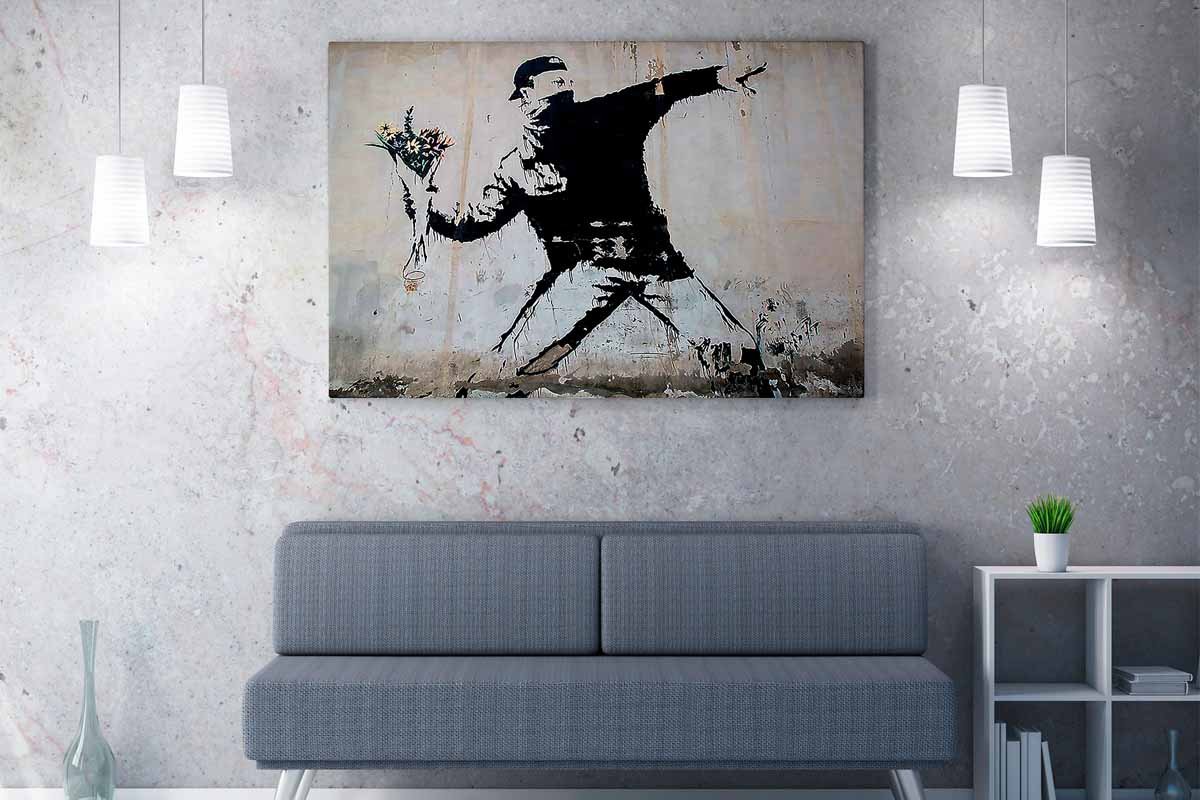 Tableau "Le Lanceur de fleurs" Banksy - 70 x 100 cm