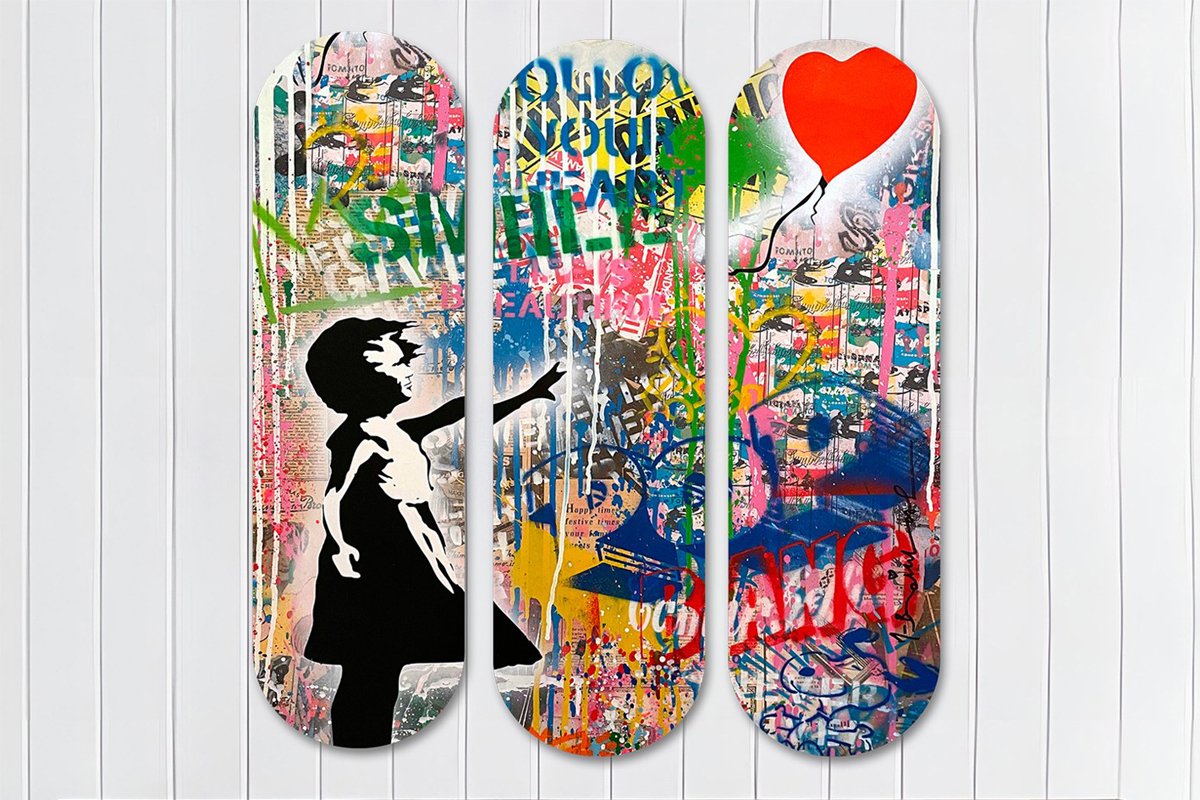 Triptyque "La Fille au ballon rouge" Banksy - 20 x 70 cm