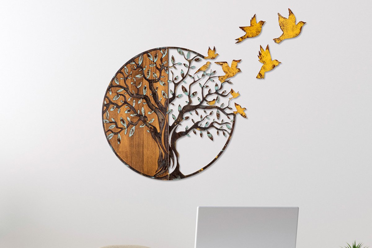 Décoration murale en bois - 92 x 71 x 3 cm - Naturel et noir
