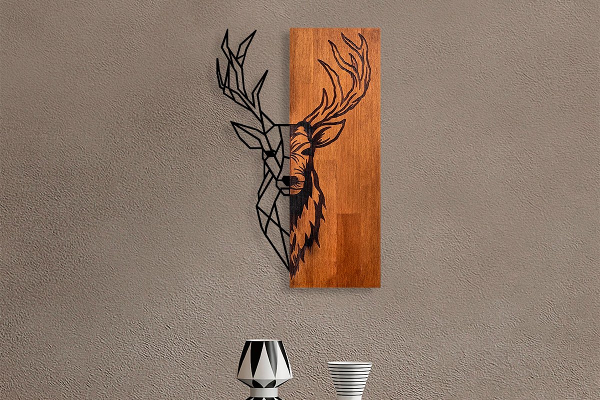 Décoration murale en bois Red Deer 1 - 36 x 58 cm - Naturel et noir