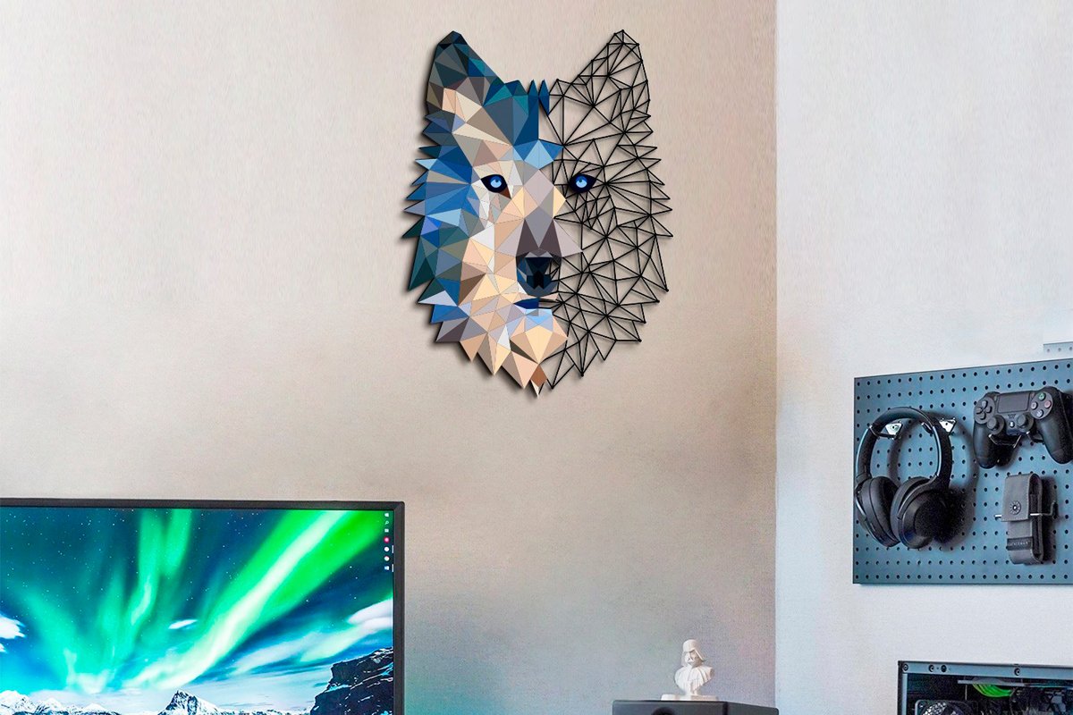 Décoration murale Metal Wolf Art - 35 x 48 cm - Noir et bleu