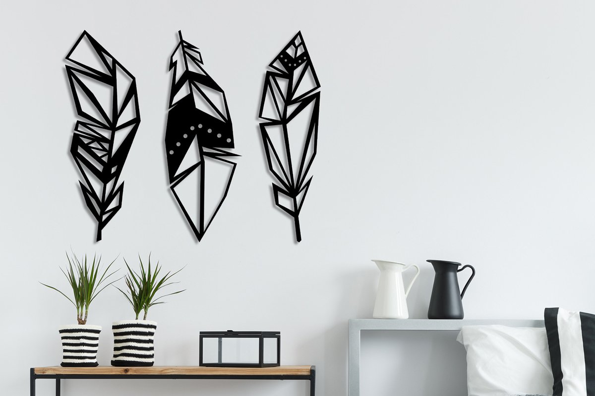 3 décorations murales Feather - 3 x (78 x 65) cm - Noir