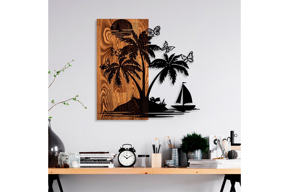 Décoration murale en bois Holiday island - 58 x 57 cm - Naturel et noir