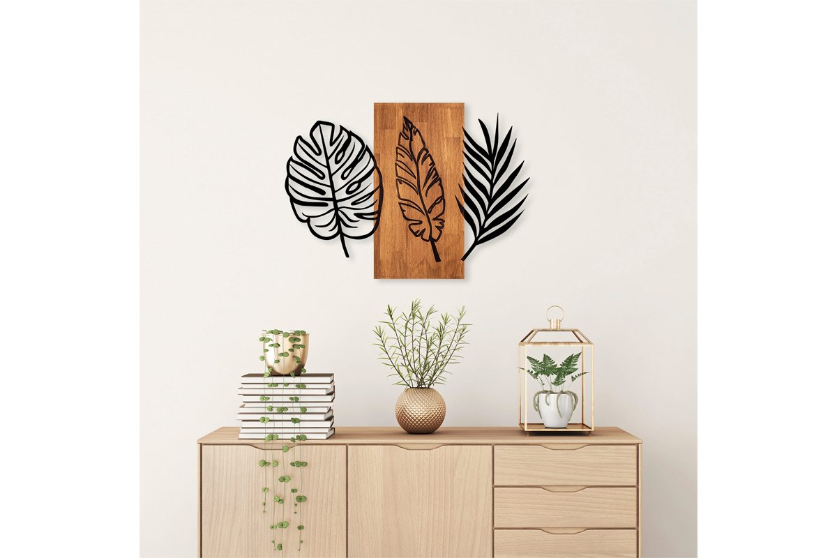 Décoration murale Triple Leaves - 58 x 80 cm - Naturel et noir