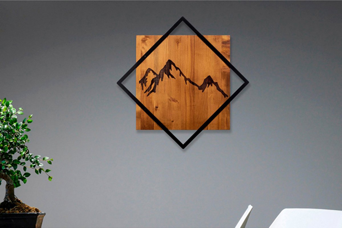 Décoration murale Mountain 2 en bois - Noir et marron - 54 x 54 cm