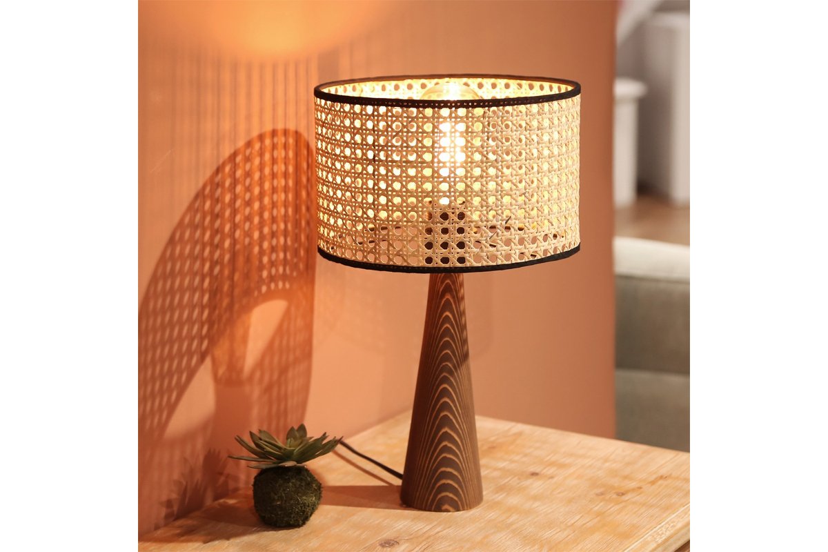 Lampe à poser en bois et rotin - Naturel et beige - 5-9 W
