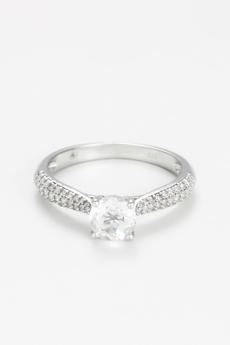 Matière : or blanc 375/1000, diamants 0,327 carat/62 et topaze 1,43 carat/1