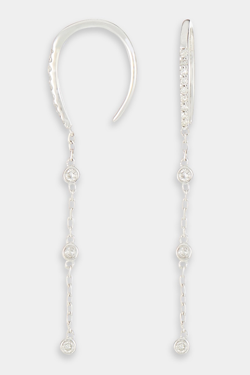Boucles d’oreilles pendantes en or blanc serties de 12 diamants.