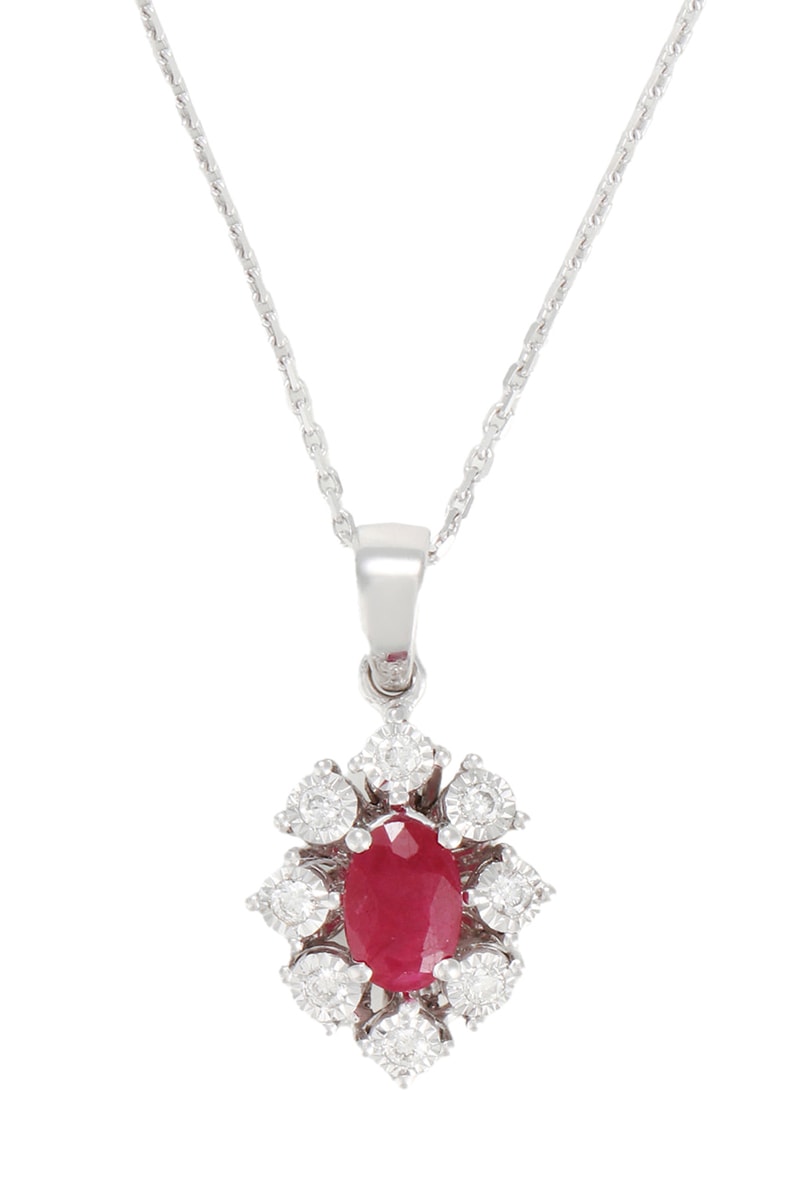Pendentif en or blanc serti de 8 diamants et d'un rubis.