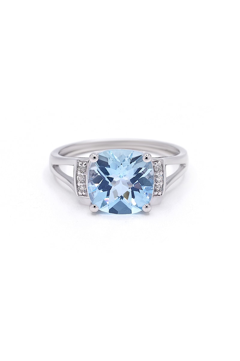 Bague en or blanc sertie d'une topaze, d'un diamant et de cristaux.