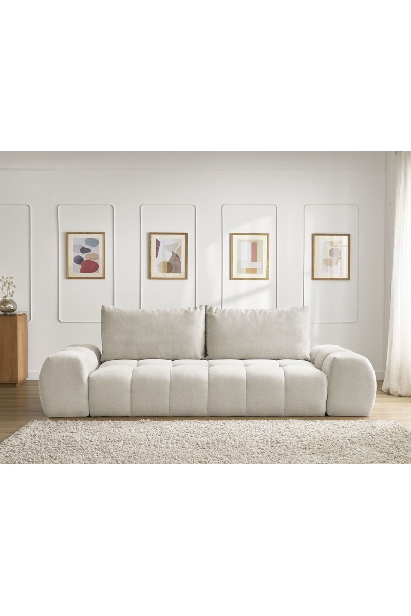 Canapé droit convertible Everest - Beige - 3 places - En polyester - Couchage 197 x 153 cm