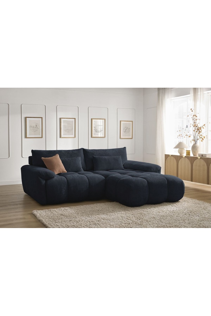 Canapé d'angle droit Ivane - Bleu foncé - 3 places - En tissu texturé
