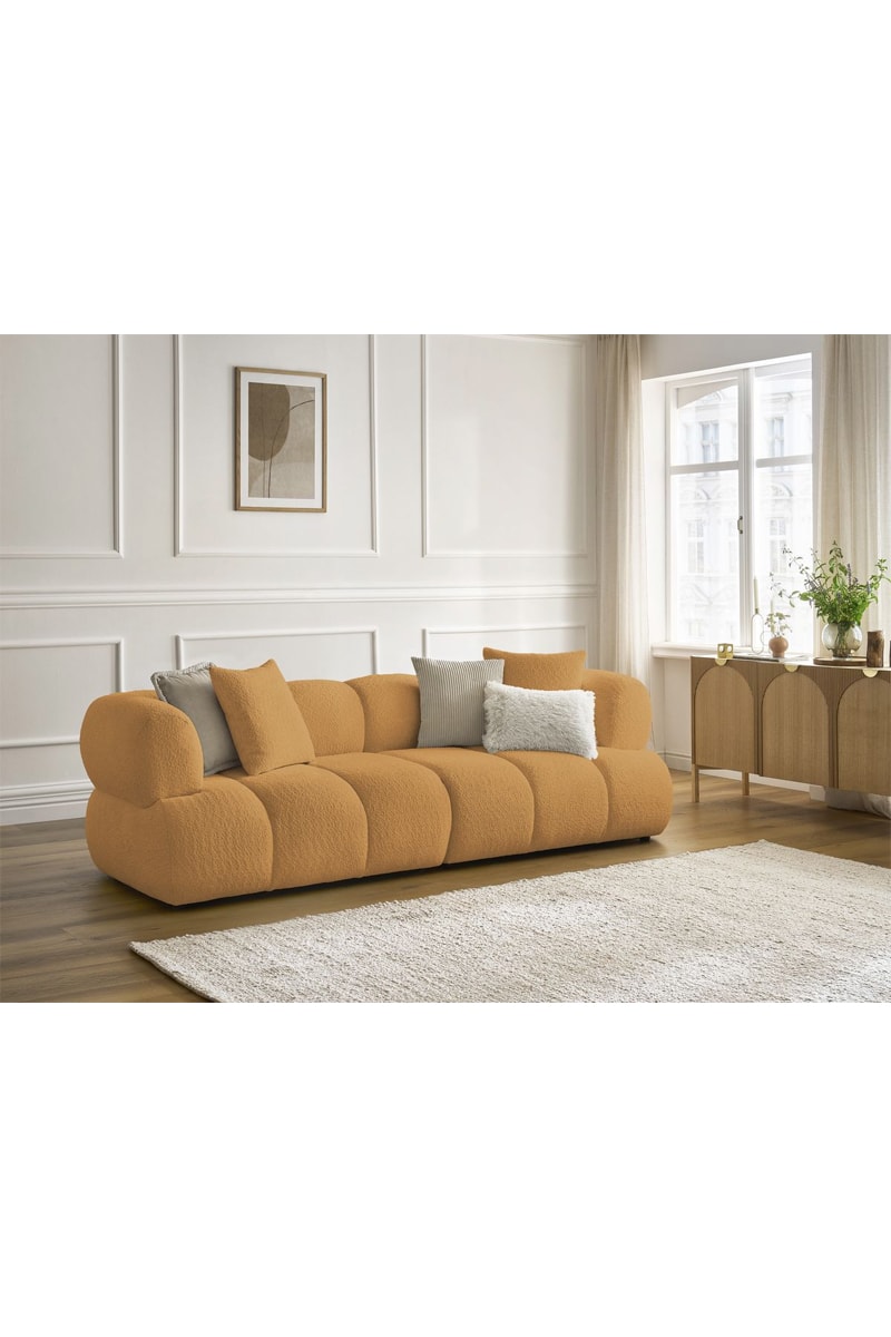 Canapé Pamira - Jaune - 3 places - En tissu bouclette