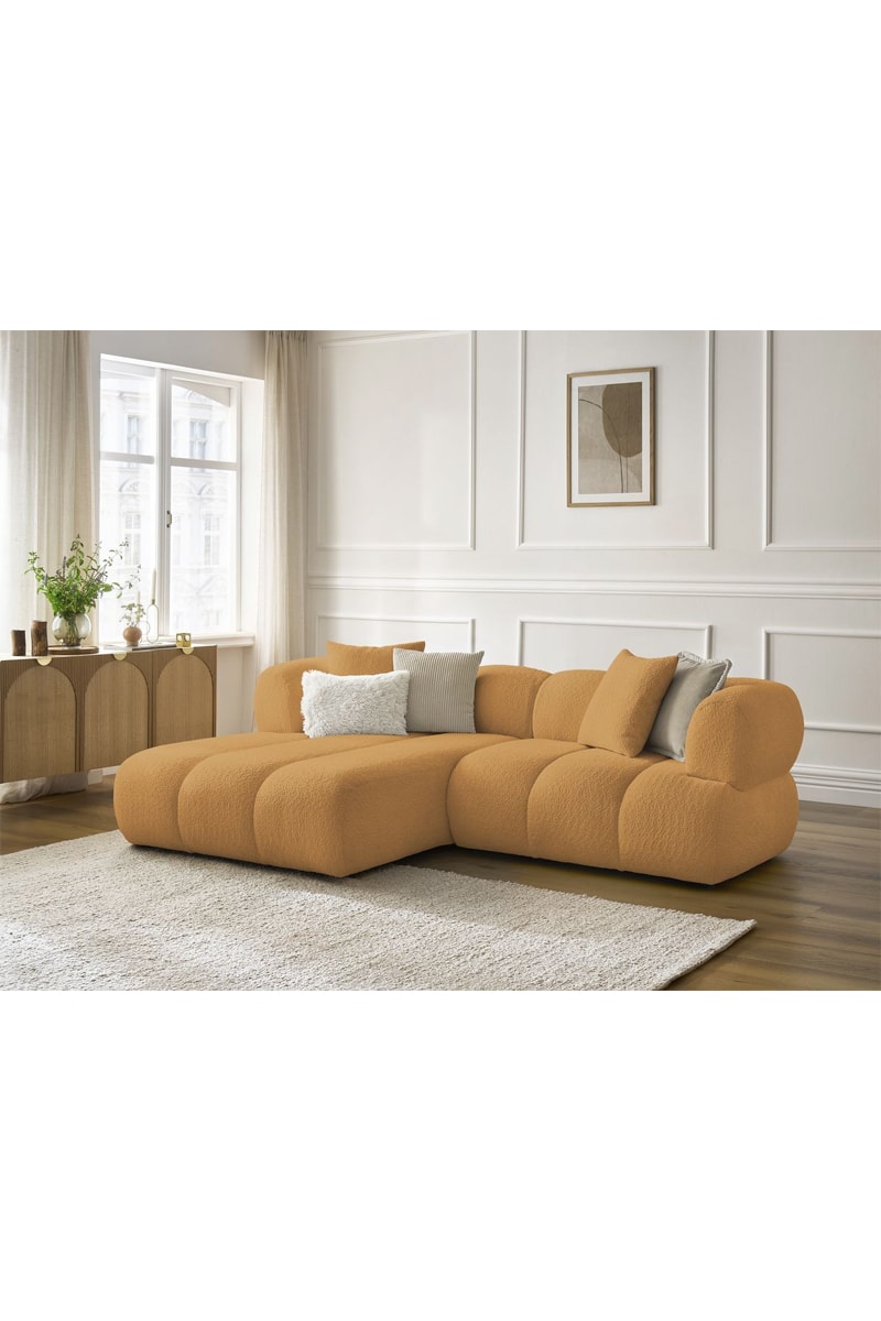 Canapé d'angle gauche Pamira - Jaune - 4 places - En tissu bouclette