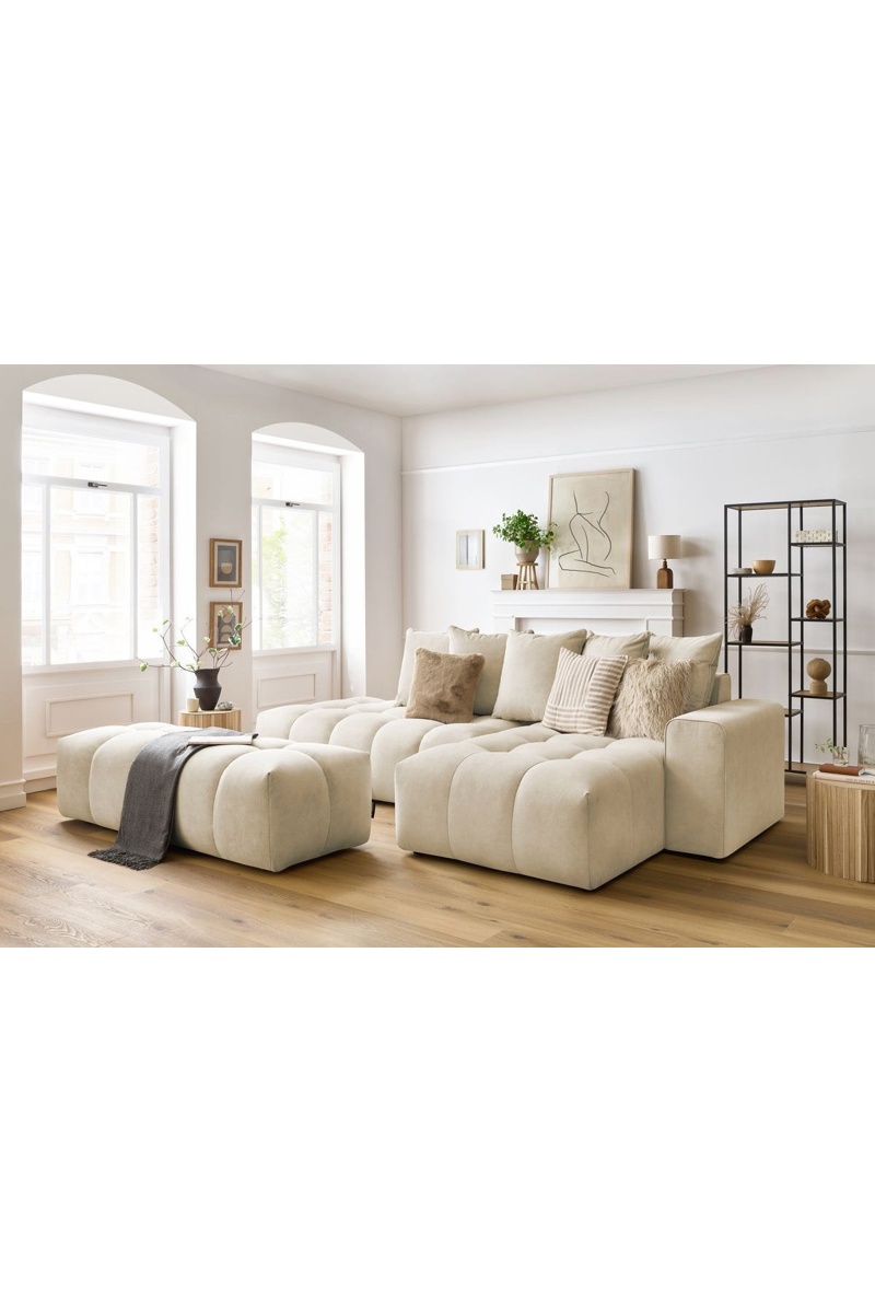 Canapé d'angle droit et pouf Mont-Blanc - Beige
