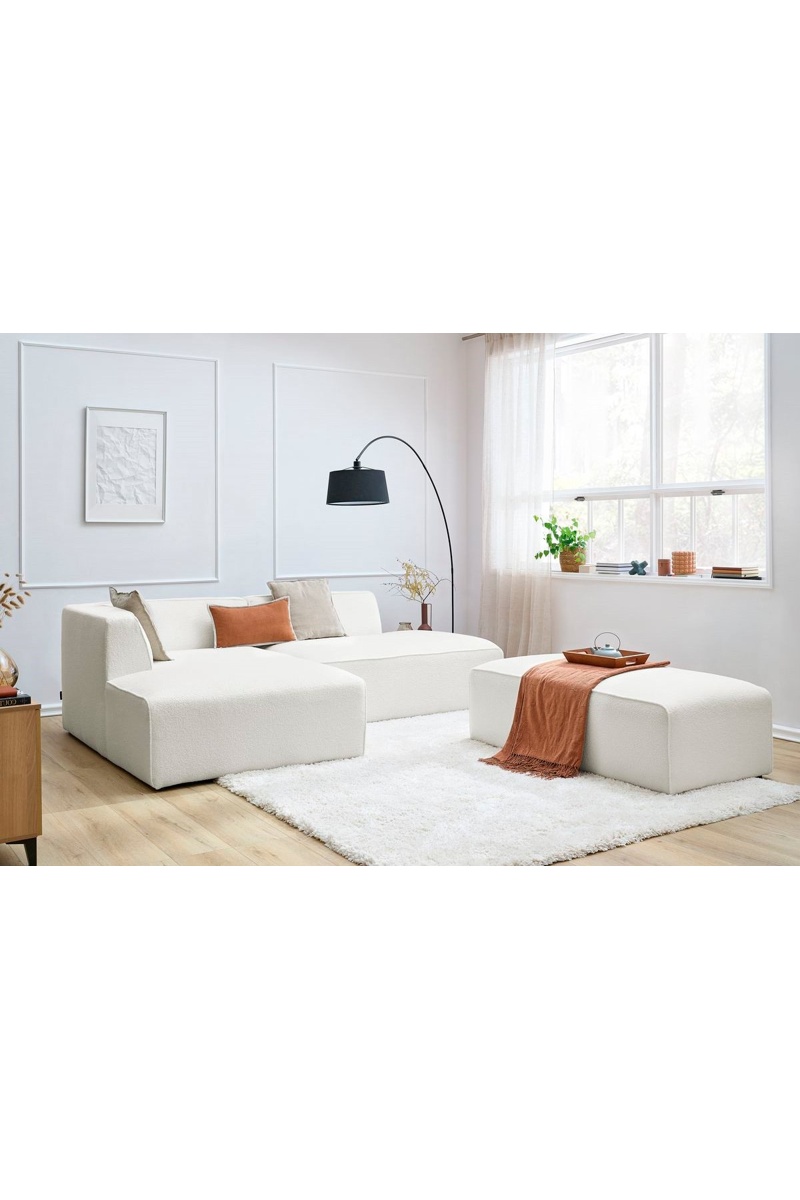 Canapé d'angle gauche et pouf Megève - Blanc cassé