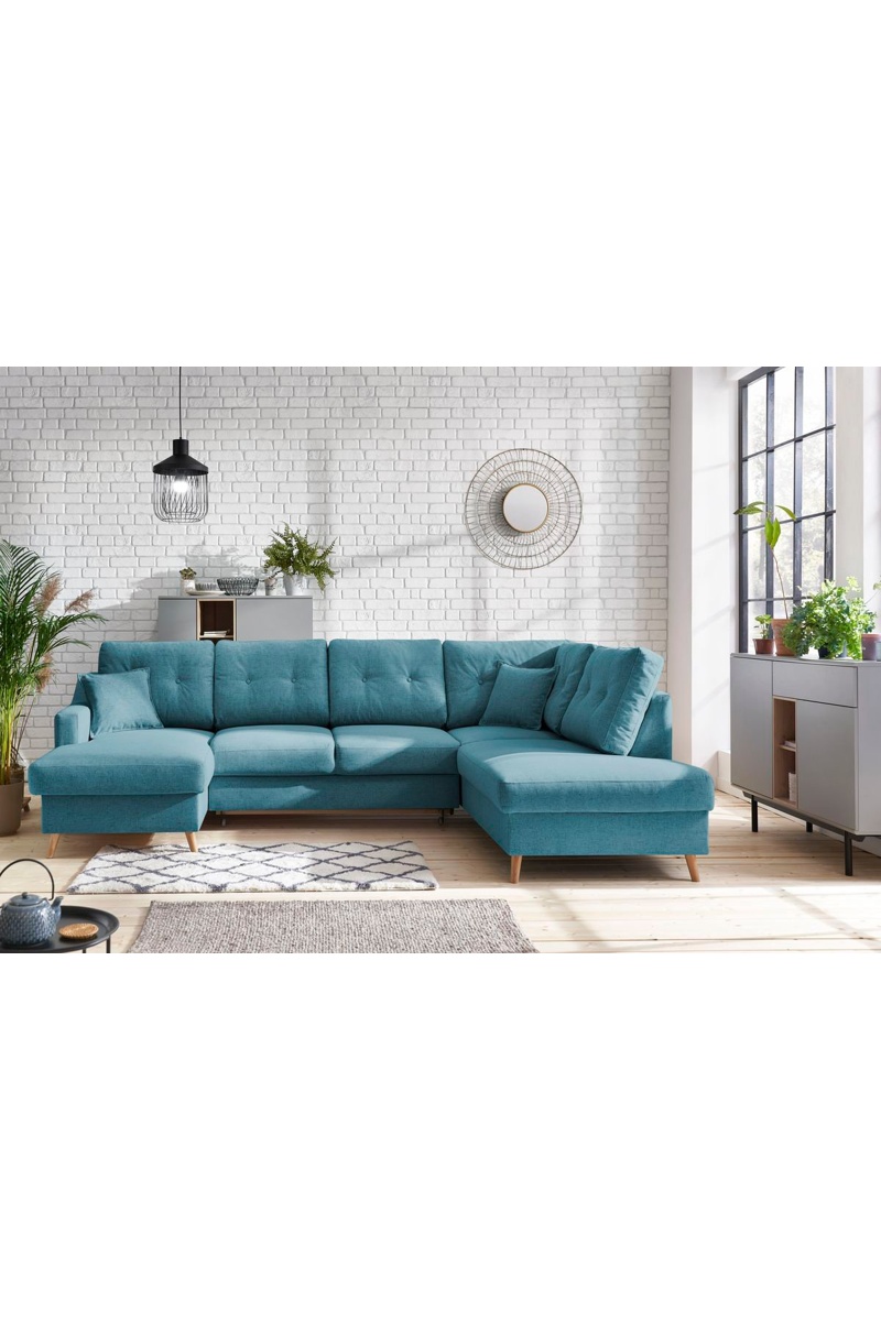 Canapé d'angle panoramique gauche convertible Sweden - Turquoise - Couchage 130 x 260 cm