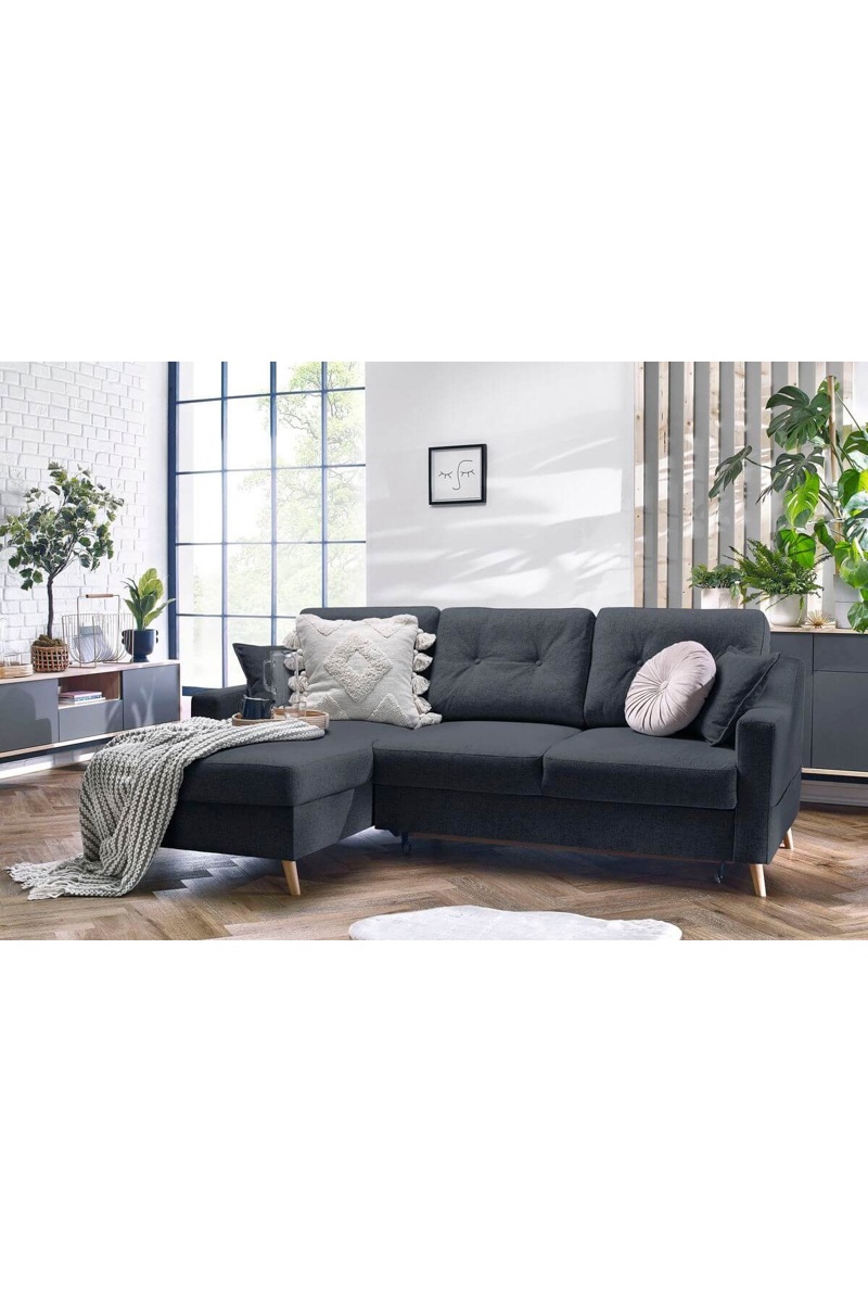 Canapé 4 places d'angle gauche convertible avec coffre Sweden - Gris foncé - Couchage 128 x 196 cm