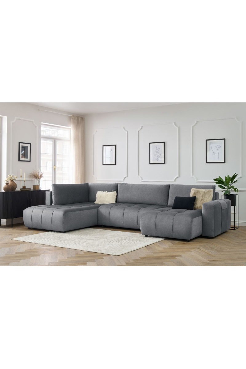 Canapé d’angle droit panoramique convertible Arsène - Gris foncé