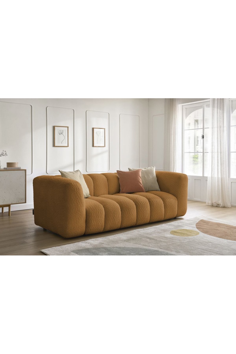 Canapé droit Talia - Jaune - 3 places - Tissu bouclette