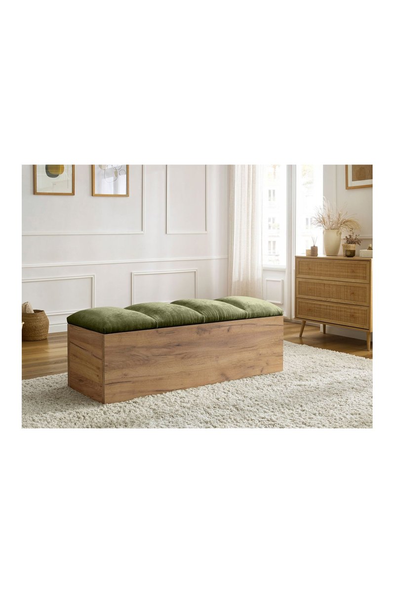 Banc-coffre en bois Kumo - Vert foncé - En tissu