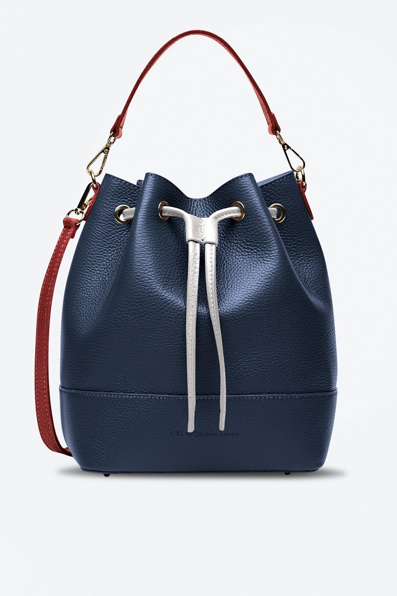 Sac seau en cuir Champ Elysée - Bleu marine et rouge