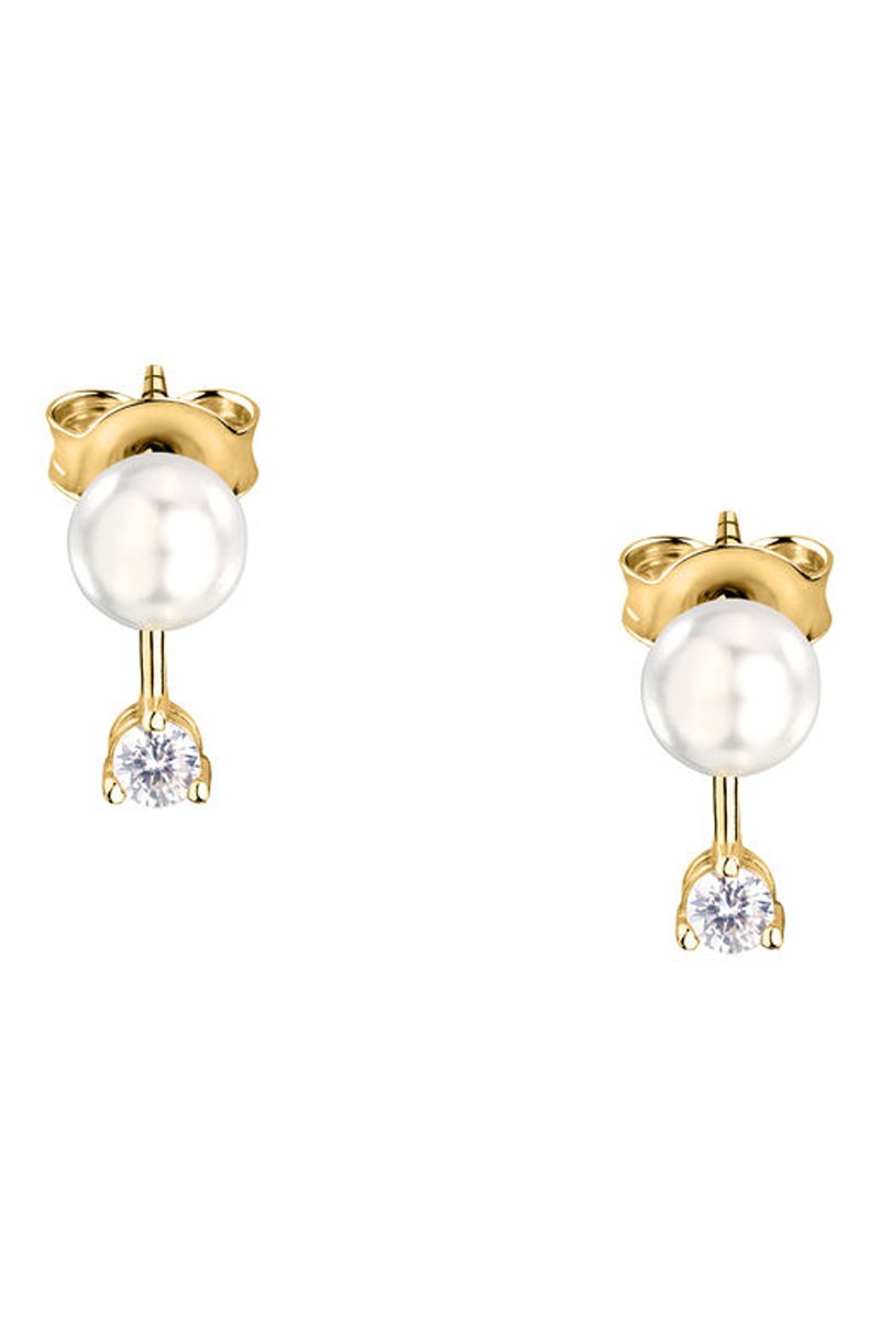 Puces en argent plaqué or jaune serties d’une perle d’imitation et d’un oxyde de zirconium.