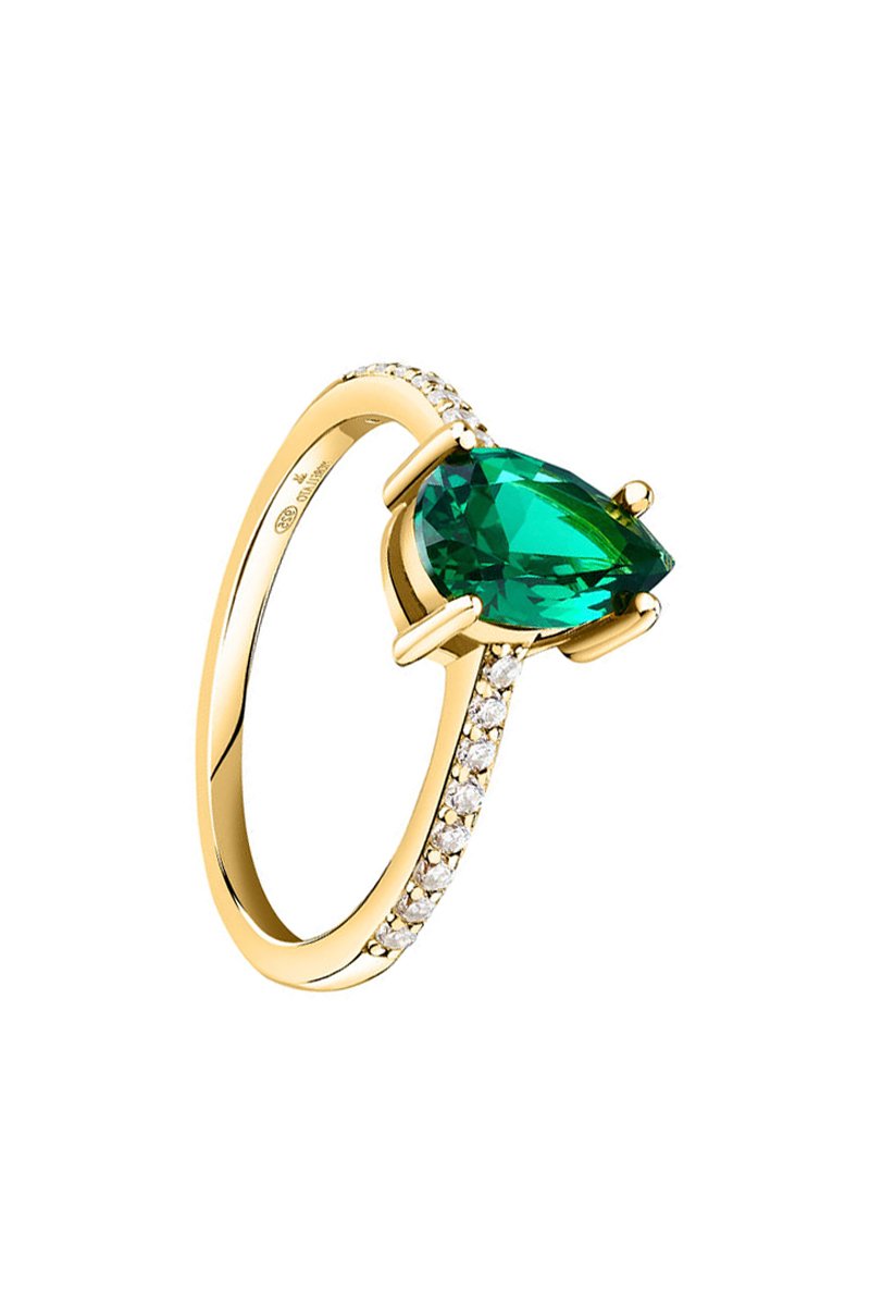 Bague en argent plaqué or jaune sertie d'une zircone et de cristaux.