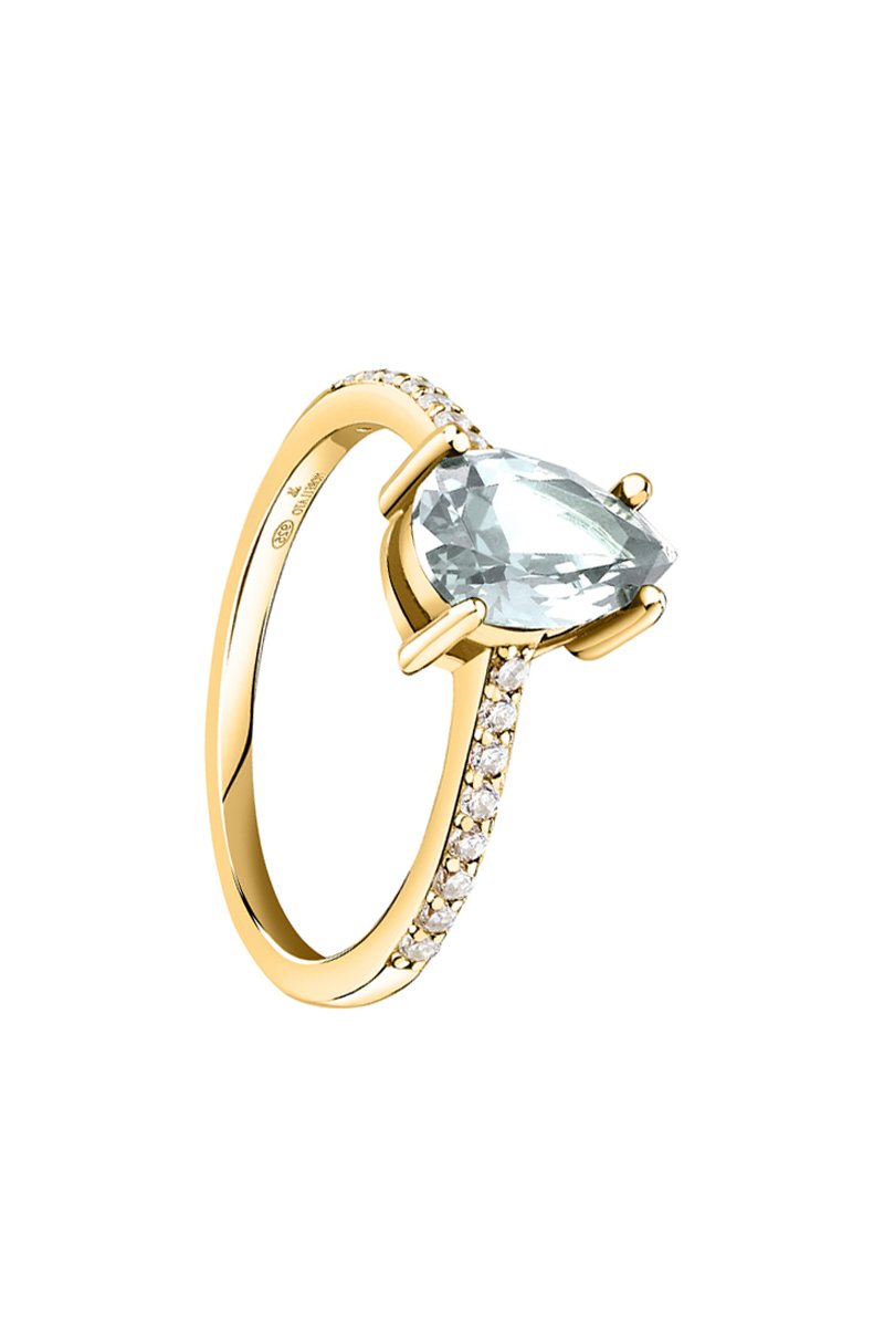 Bague en argent plaqué or jaune sertie d'une zircone et de cristaux.