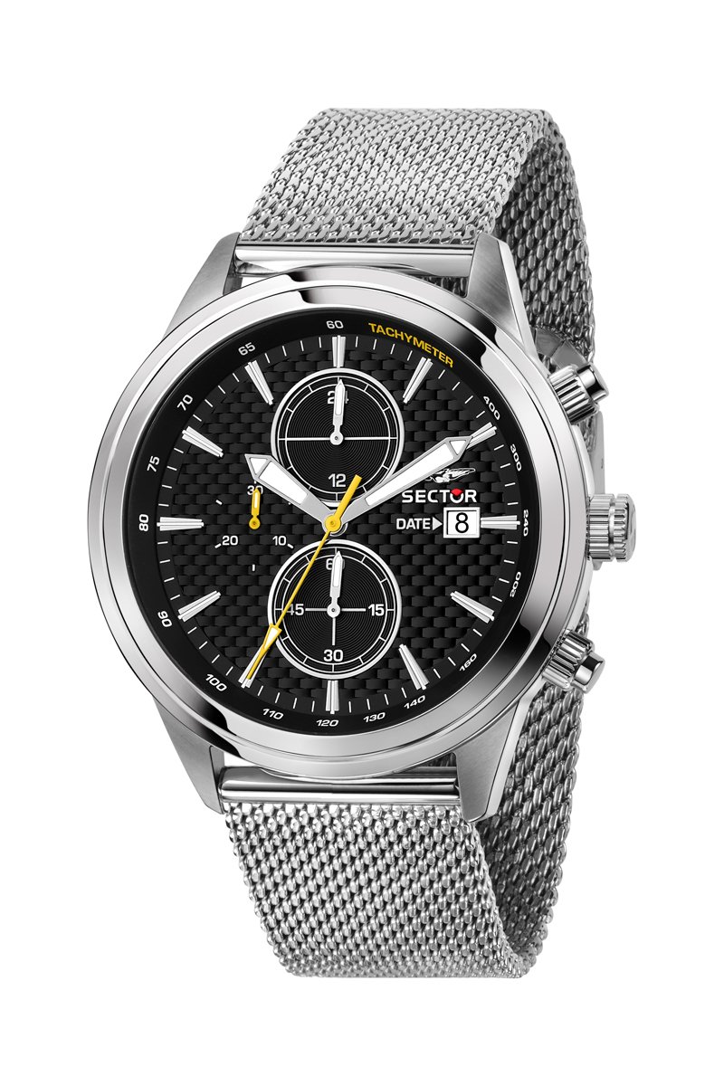 Montre à quartz en acier - Chronographe et tachymètre - Argenté