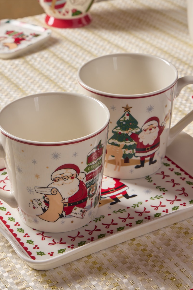 2 mugs et 1 plateau en porcelaine Let it Snow