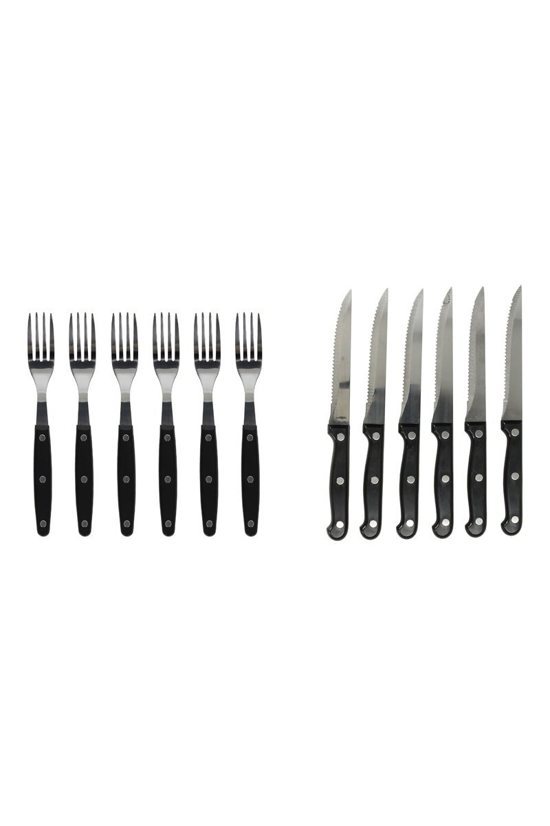 6 fourchettes et 6 couteaux de table en acier inoxydable.