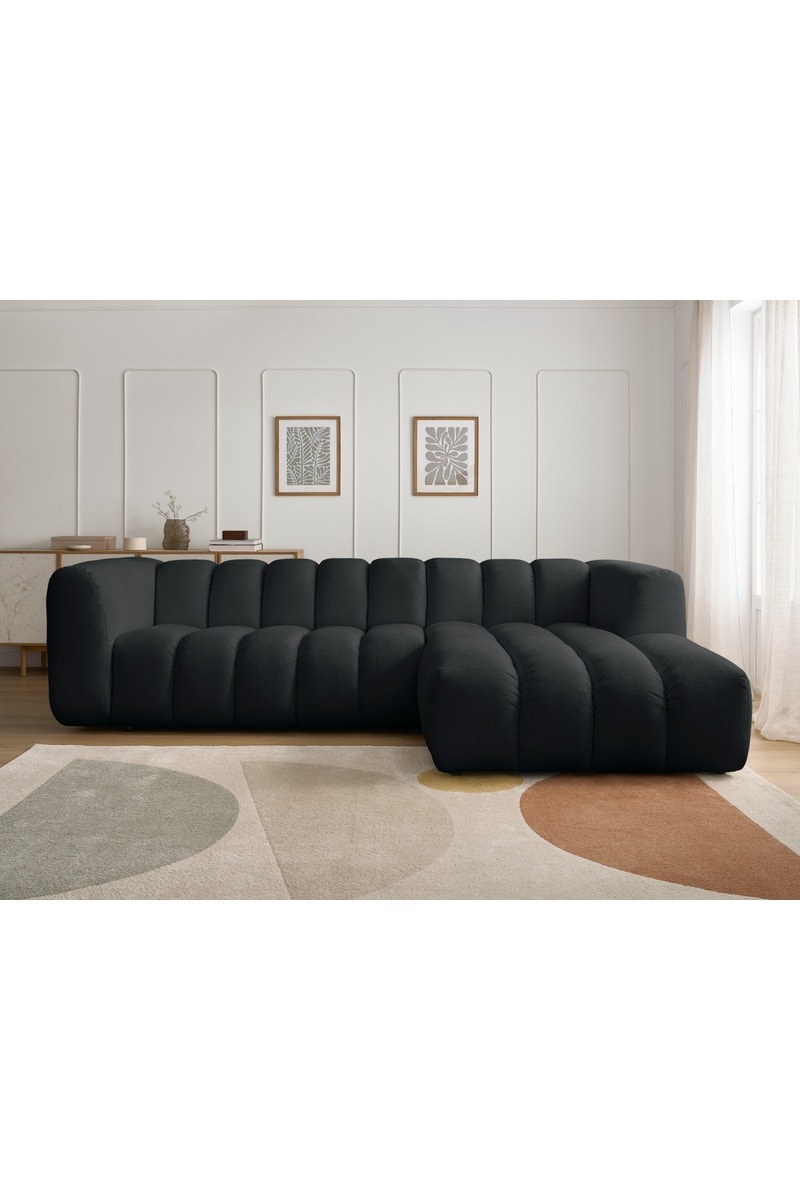 Canapé d’angle fixe Talia - Noir - 3 places - En tissu chiné