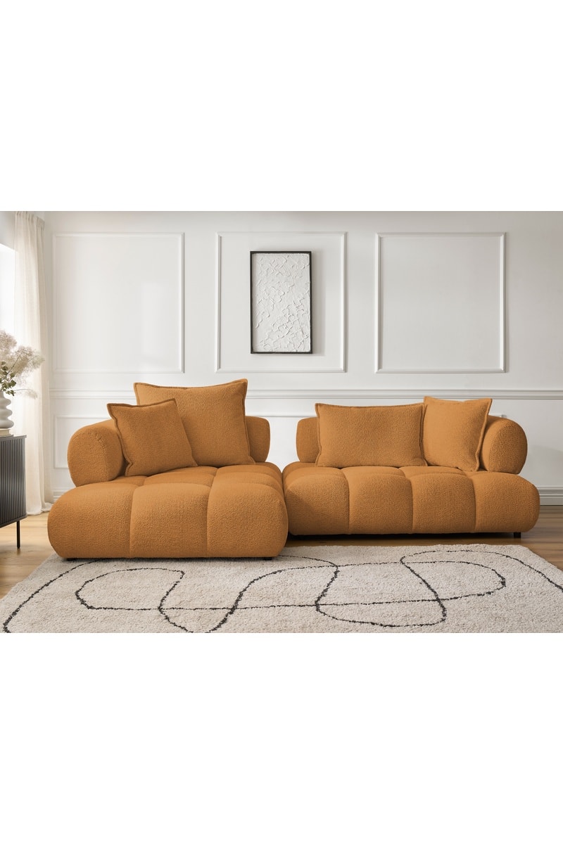 Canapé d’angle fixe gauche Alya - Jaune - 4 places - En tissu bouclette