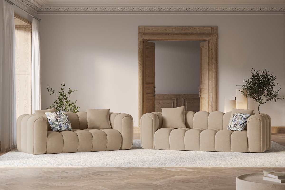 Canapé modulaire Elise - Beige - 4 places - En tissu velours
