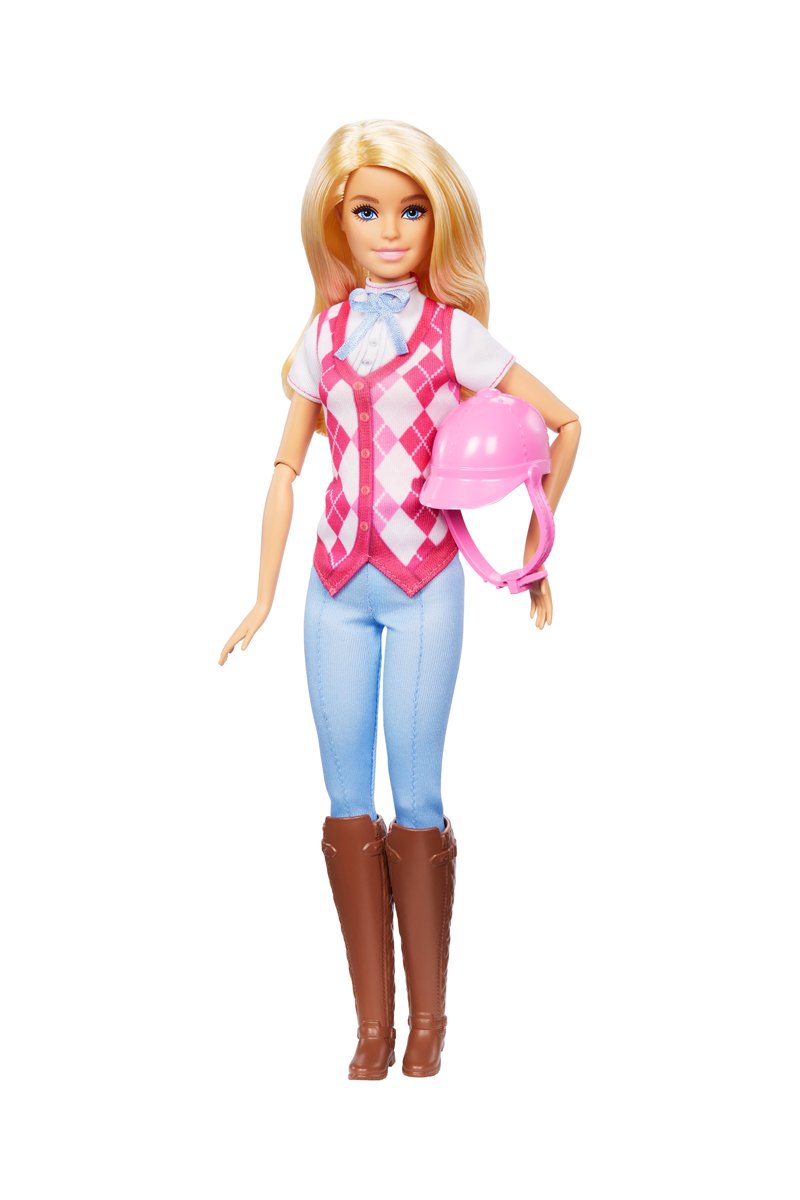 Avec son élégante tenue d’équitation, elle ressemble à son personnage de la série Netflix, Barbie Mysteries : The Great Horse Chase.