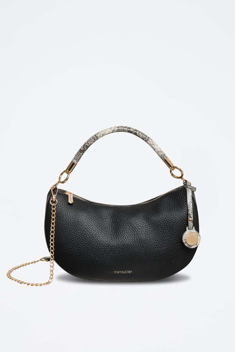 Patte amovible effet reptile avec empiècement en métal et logo sur le côté.