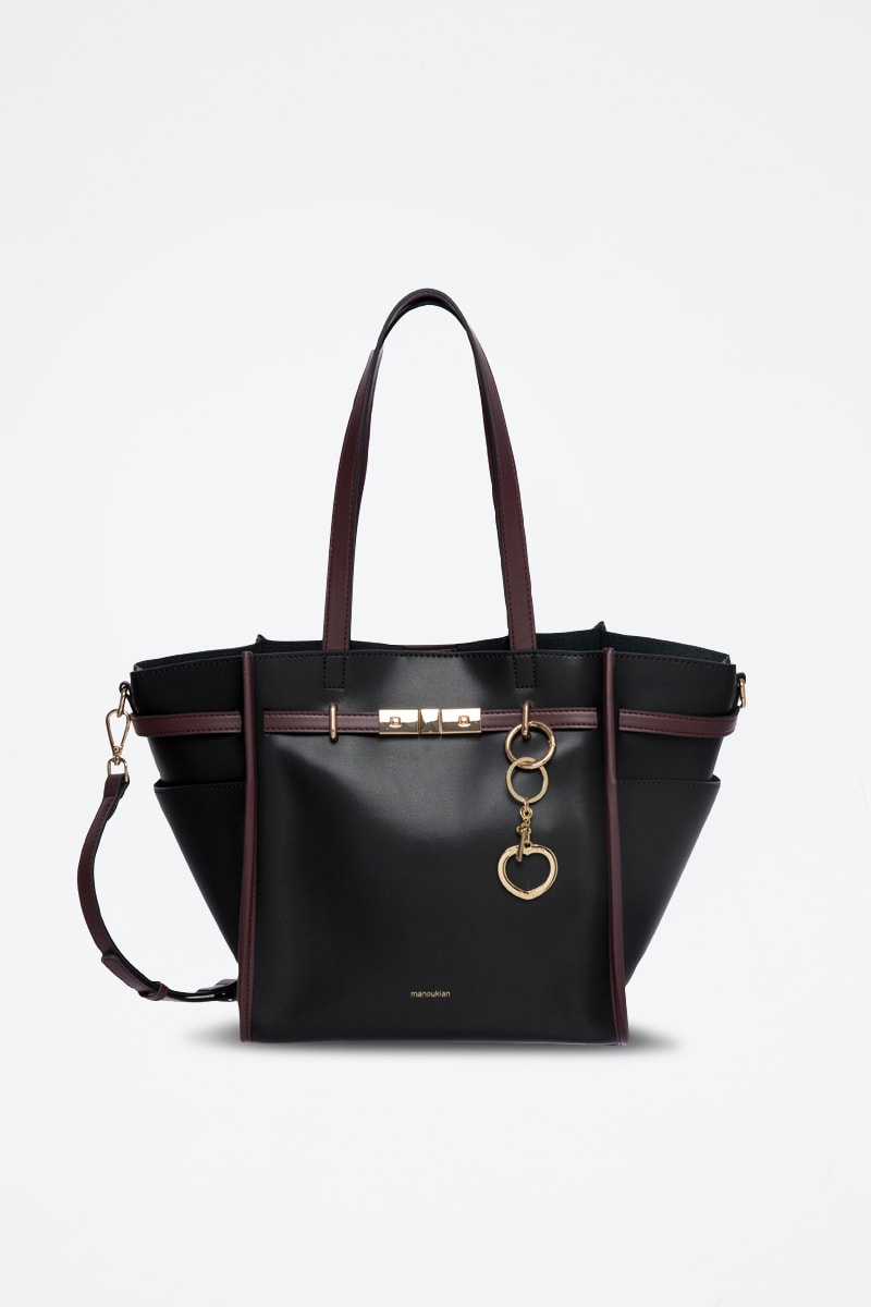 Patte sous passants avec empiècements en métal, porte-clés amovible avec logo et logo métallique devant.