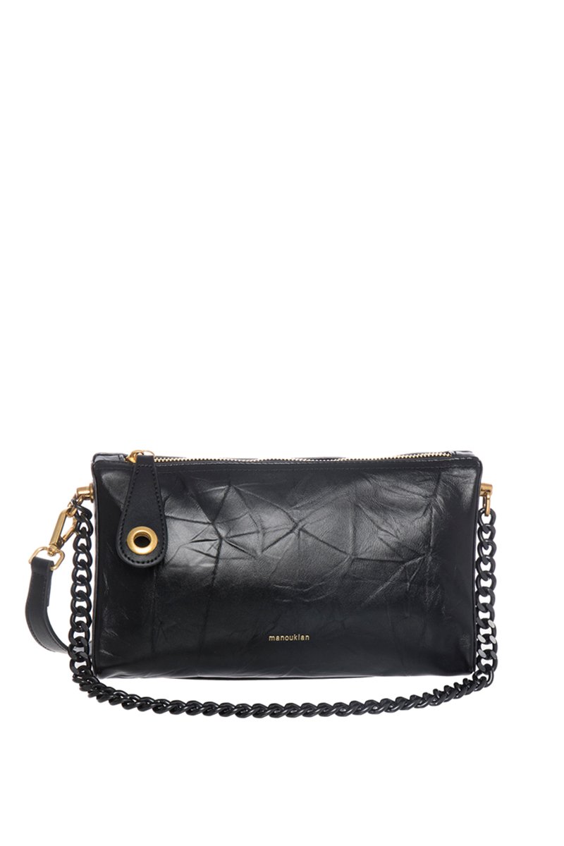 Sac porté épaule en croûte de cuir Vicky - Noir