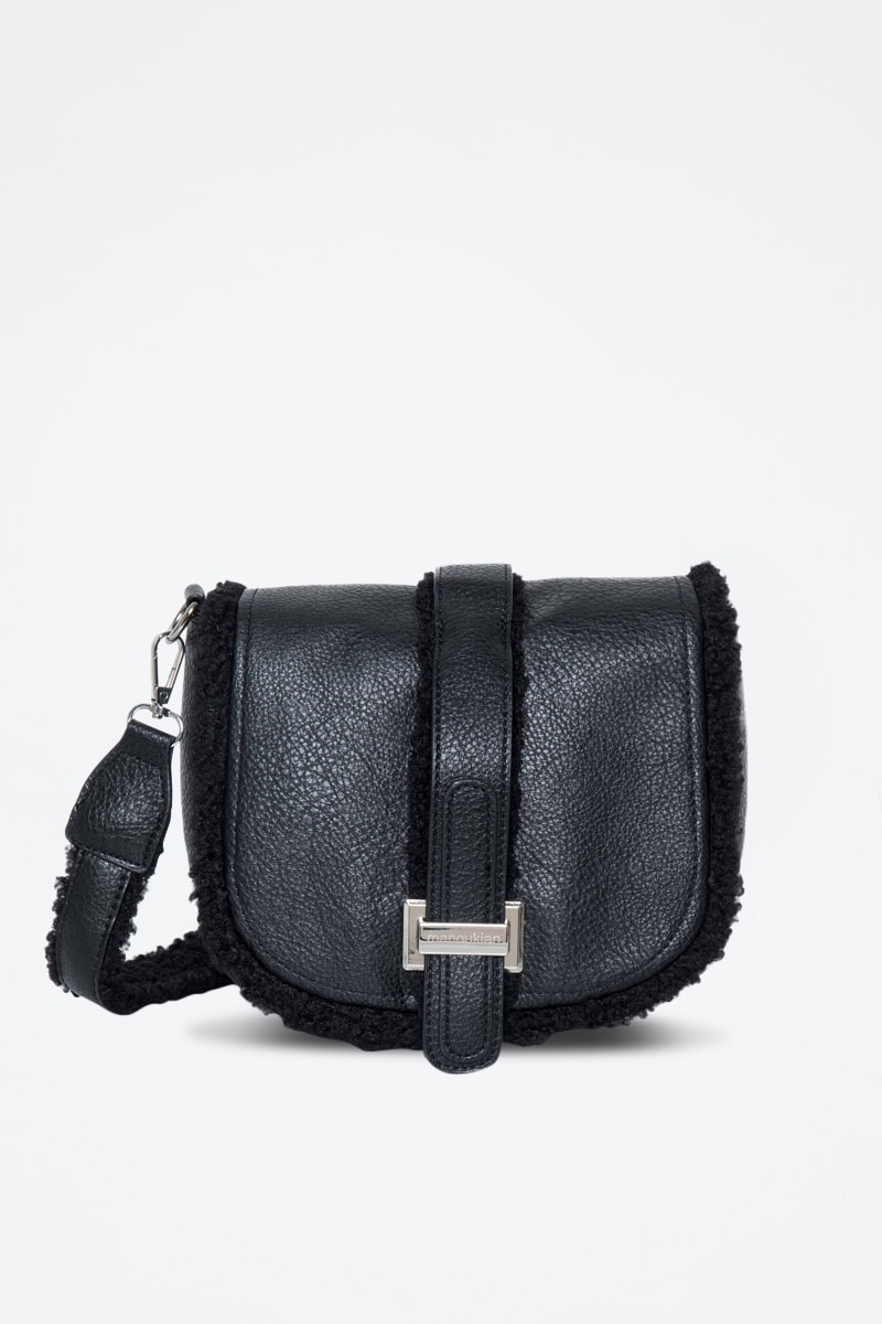 Empiècements en fourrure synthétique sur l’anse et devant.