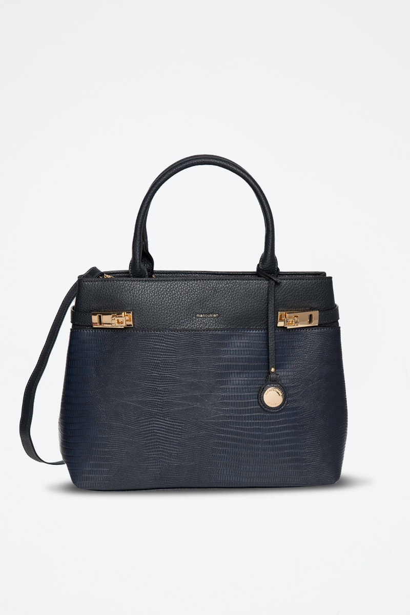 Patte avec empiècement en métal, empiècement en métal et logo effet métallisé devant.