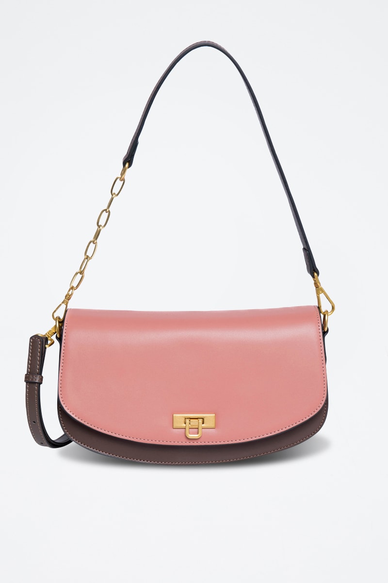 Sac porté épaule en cuir Clorys - Rose poudré