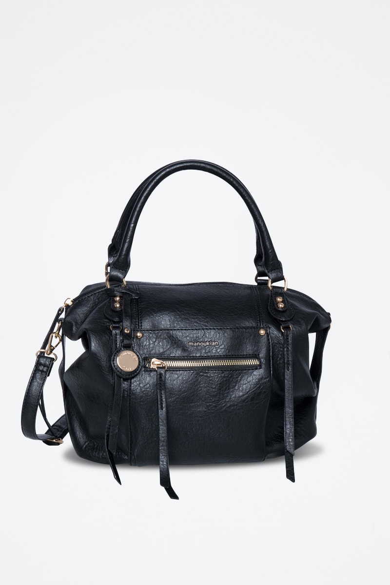 Poche zippée, patte amovible avec empiècement et logo et logo métallique devant.