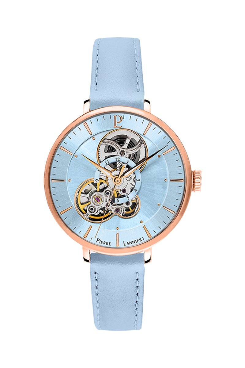 Montre automatique en cuir Mélodie - Bleu clair et doré rose