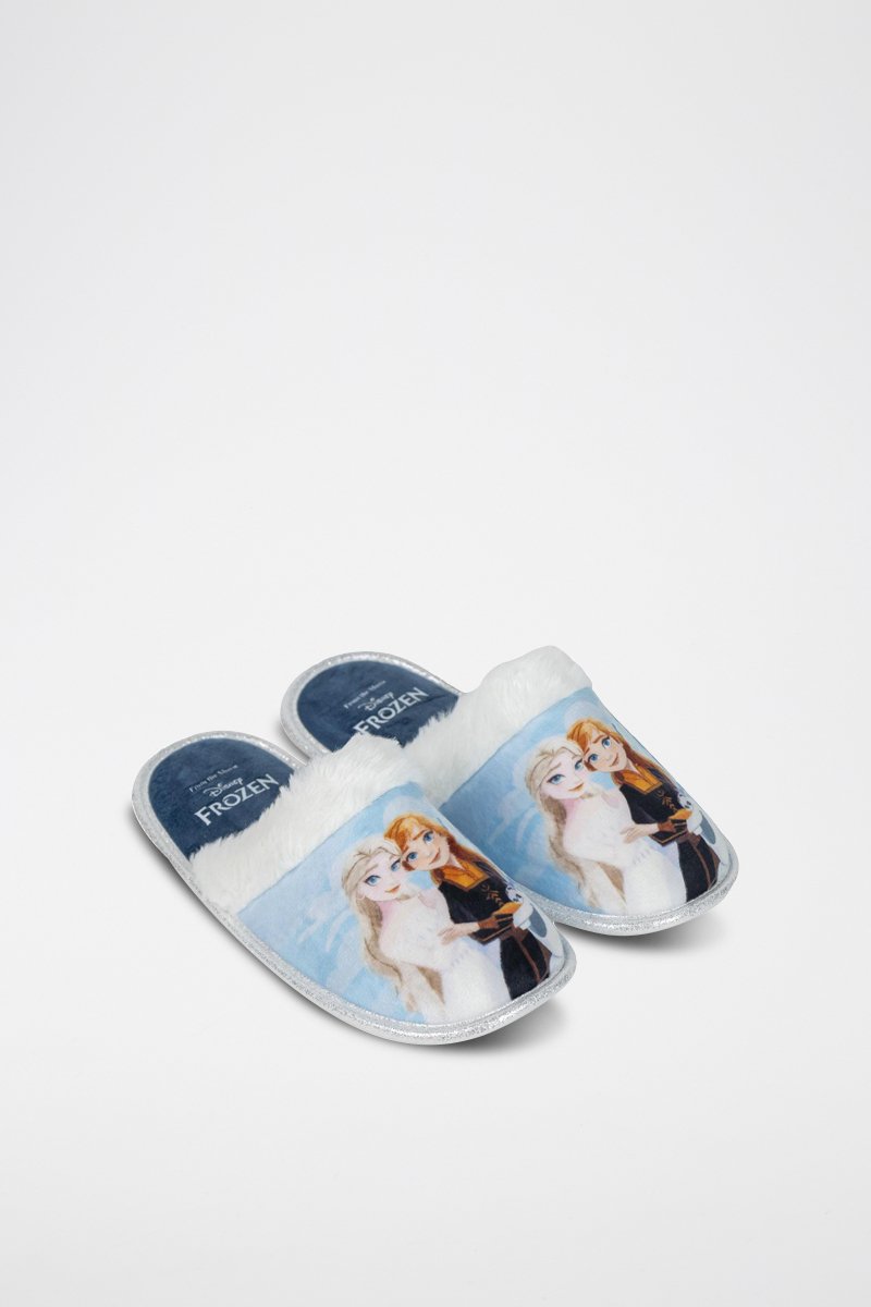 Pantoufles fourrées Elsa et Anna La Reine des Neiges Disney - Ciel