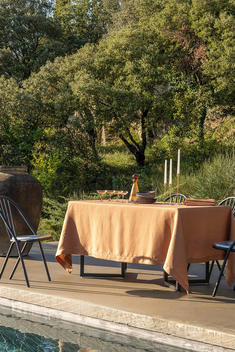 Le charme d'un dîner à l'italienne, le luxe et le raffinement d'un uni 100% lin. Les finitions ajoutent du caractère à cette collection aux tons lumineux et au tissage délicat.