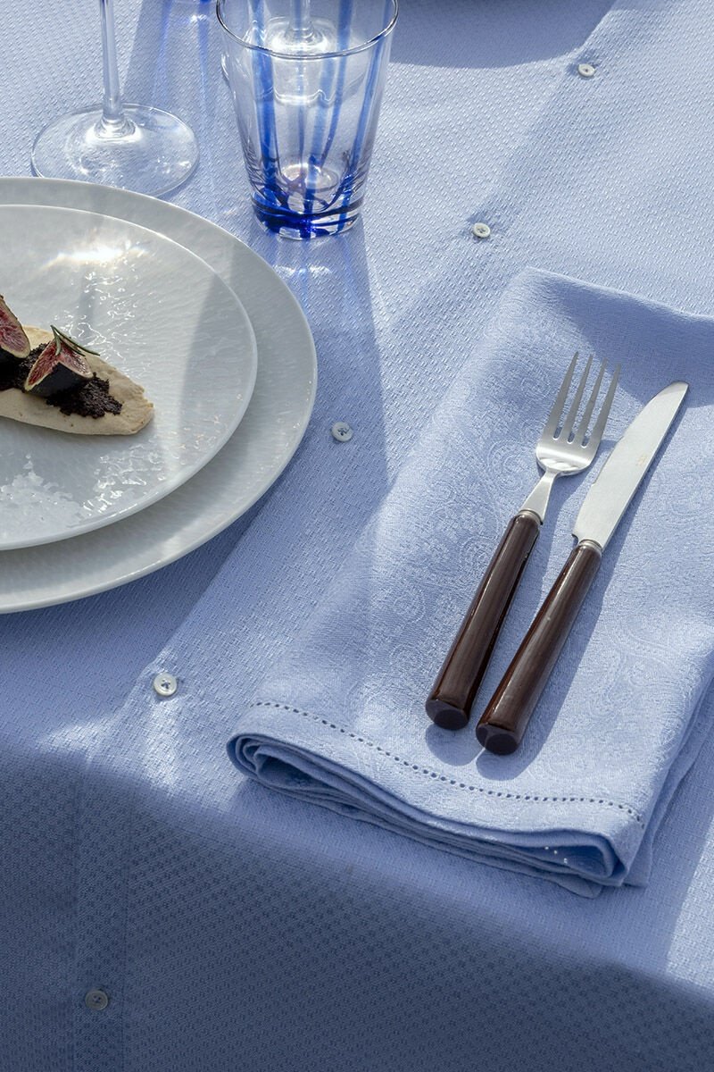 4 serviettes de table en lin Portofino Fiori - Ciel - 58 x 58 cm
