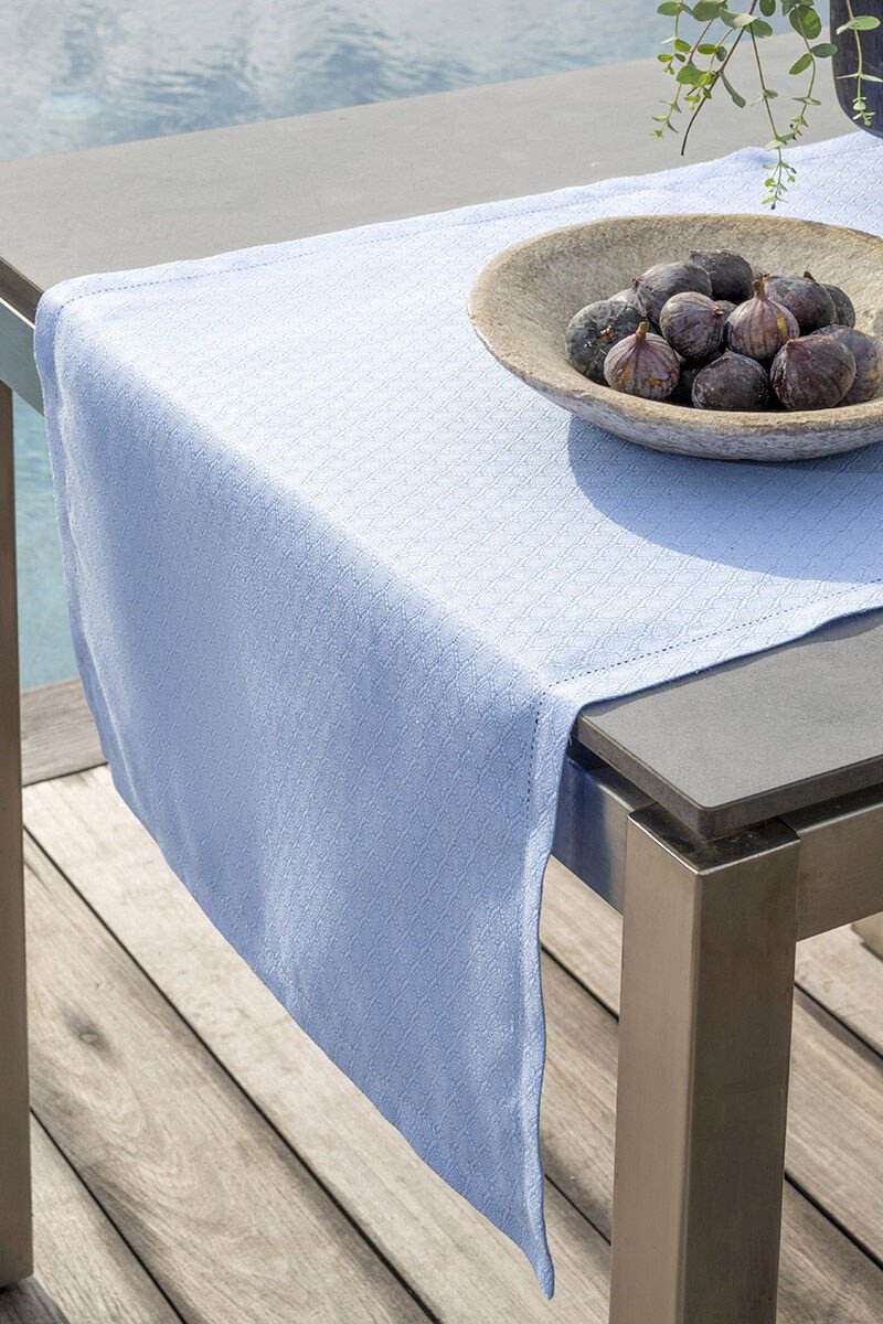 Chemin de table en lin Portofino Geo - Ciel - 50 x 150 cm