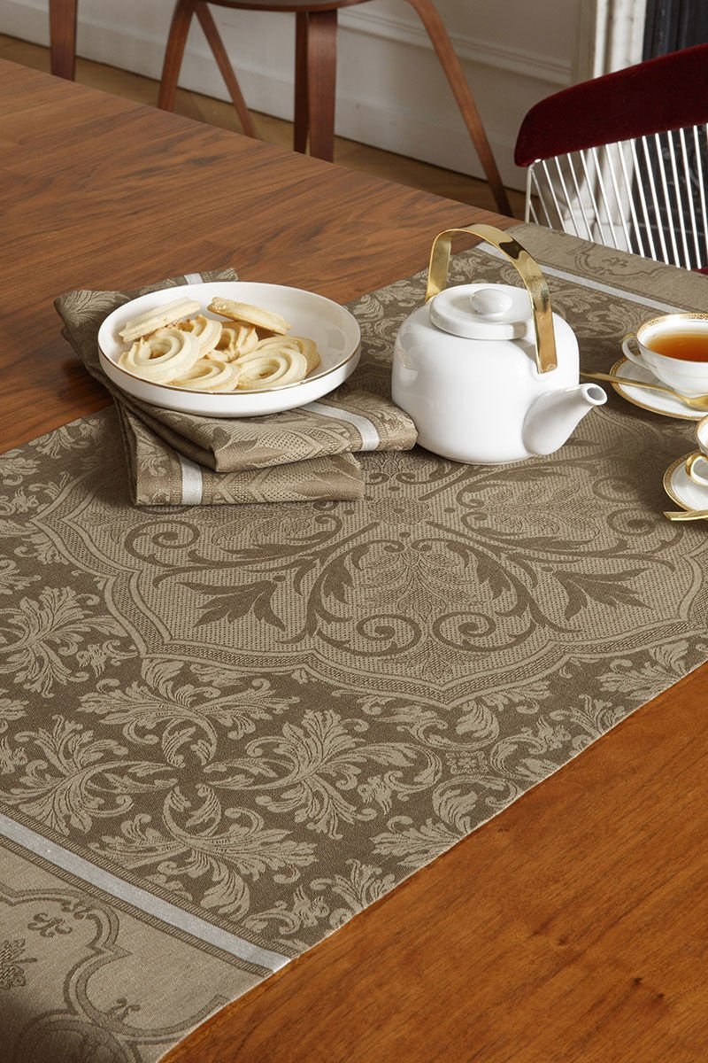 Chemin de table en lin Armoiries - Marron et beige - 50 x 150 cm