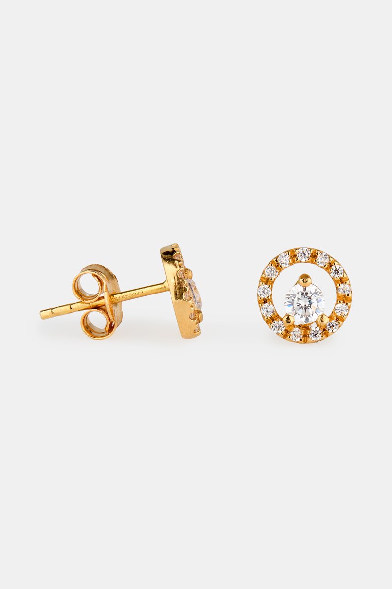 Puces en or jaune serties de 14 zirconiums.
